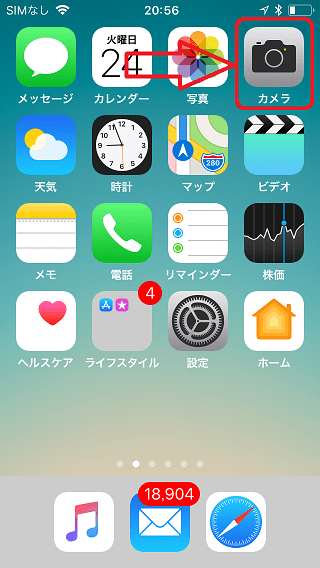 カメラアプリのアイコンをタップしてカメラアプリを
